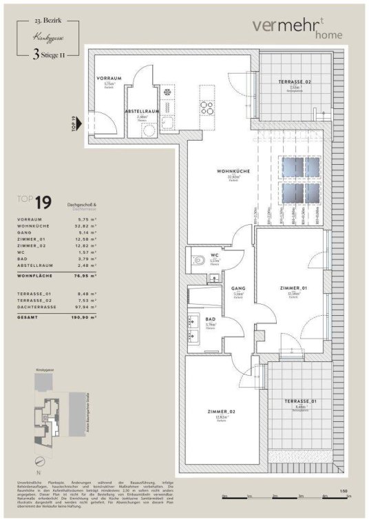 Öffi-Anbindung: Bus 65A/66A/67B (Willendorfer Gasse ~1 Min.), WLB-Station Inzersdorf ~3 Min.; Karlsplatz ~30 Min. öffentlich.Top C19Kaufpreis netto zzgl 20% Ust // Kaufpreis Eigennutzer: 495.000€OBJEKTBESCHREIBUNG:Aufgeteilt auf 3 Zimmer befinden sich auf ca 77m² Wohnfläche insgesamt 1 Vorzimmer, 1 Toilette, 1 Abstellraum, 1 Wohnzimmer mit offener Wohnküche und angrenzender 8m² Terrasse, sowie 2 Schlafzimmer, beide mit Ausgang auf die 8m² große Terrasse, und 1 BadezimmerHighlight hier ist jedenfalls die 98m² große Dachterrasse.Bei Bedarf kann ein Garagenplatz um 22.500€ netto zzgl 20% Ust (Anleger) oder 25.000€ (Eigennutzer) dazu erworben werden.Wir weisen darauf hin, dass zwischen dem Vermittler und dem zu vermittelnden Dritten ein familiäres oder wirtschaftliches Naheverhältnis besteht.Herr Manuel Plachner, MSc MRICS, Mobil: , Mail: [E-Mail-Adresse entfernt], steht für ein persönliches Gespräch sowie für einen Besichtigungstermin gerne zur Verfügung.