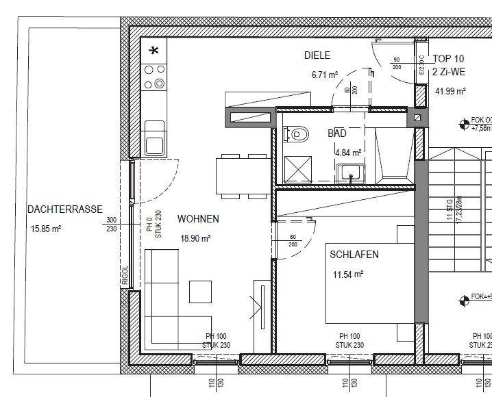 Moderne 2-Zimmer-Dachgeschosswohnung mit sonniger Dachterrasse in Linz, Wiener Straße 27a.