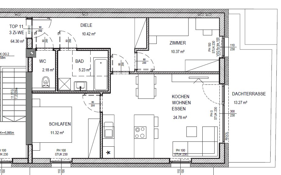Diese Dachgeschosswohnung in der Wiener Straße 27 a in Linz wird im Frühjahr/Sommer 2027 bezugsfertig und bietet auf 64,3 m² Wohnfläche zwei Zimmer, darunter ein Schlafzimmer und ein Badezimmer. Ein besonderes Highlight ist die 13,27 m² große Terrasse. Die Wohnung befindet sich in ruhiger, grüner Innenhoflage, nur wenige Gehminuten vom Musiktheater und der Landstraße entfernt.