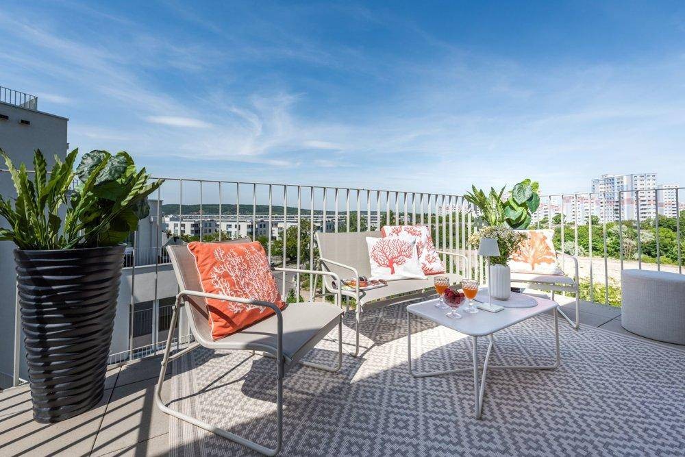 Urbanes Flair und trotzdem im Grünen wohnen: 144 nachhaltige Wohneinheiten bieten ein besonderes Lebensgefühl. Eingebettet in ein vielfältiges Begrünungskonzept und in unmittelbarer Nähe zum Naherholungsgebiet Donauinsel, bringen die Wohnungen mit Loggien, Balkonen, Terrassen oder Eigengärten buchstäblich frischen Wind in den Alltag.