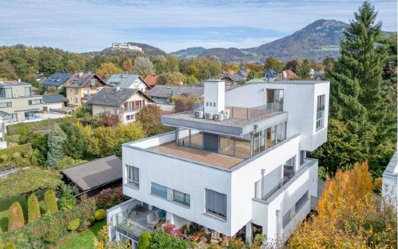 Lebensqualität und XL Privatsphäre genießen Sie in dieser exklusiven Penthouse-Maisonette in zauberhafte Grünruhelage mit exklusiver Nachbarschaft im begehrten Leopoldskron. Auf 185 m² erwartet Sie Weitblick-Zauber pur mit Panorama-Salon und 110 m² Sonnen- und Dachterrasse mit grandiosem Blick über die Dächer bis zur Festung und in die Salzburger Bergwelt. Ausstattungsmerkmale wie Sichtkamin, Klimaanlage, komfortabler Privatlift und XL-Garagenfläche mit Direktzugang zum großen Lagerraum sind selbstverständlich.