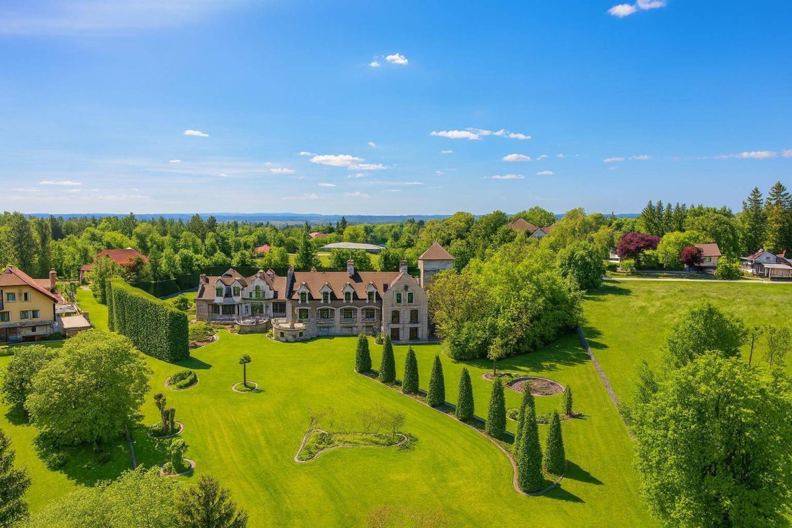 In der Marktgemeinde Lannach erhebt sich ein Anwesen, das durch seine Architektur an einen englischen Landsitz erinnert und zugleich modernen Wohnkomfort verkörpert. Auf einem parkähnlichen Grundstück von rund 10.600 m² bietet das Haupthaus eine Wohnfläche von ca. 538 m², verteilt auf elf großzügige Räume, sechs Schlafzimmer und drei Bäder. Ergänzt wird das Ensemble durch eine eigenständige Einliegerwohnung, rund 116 m² Terrassenflächen sowie mehrere Garagen und Carports.
