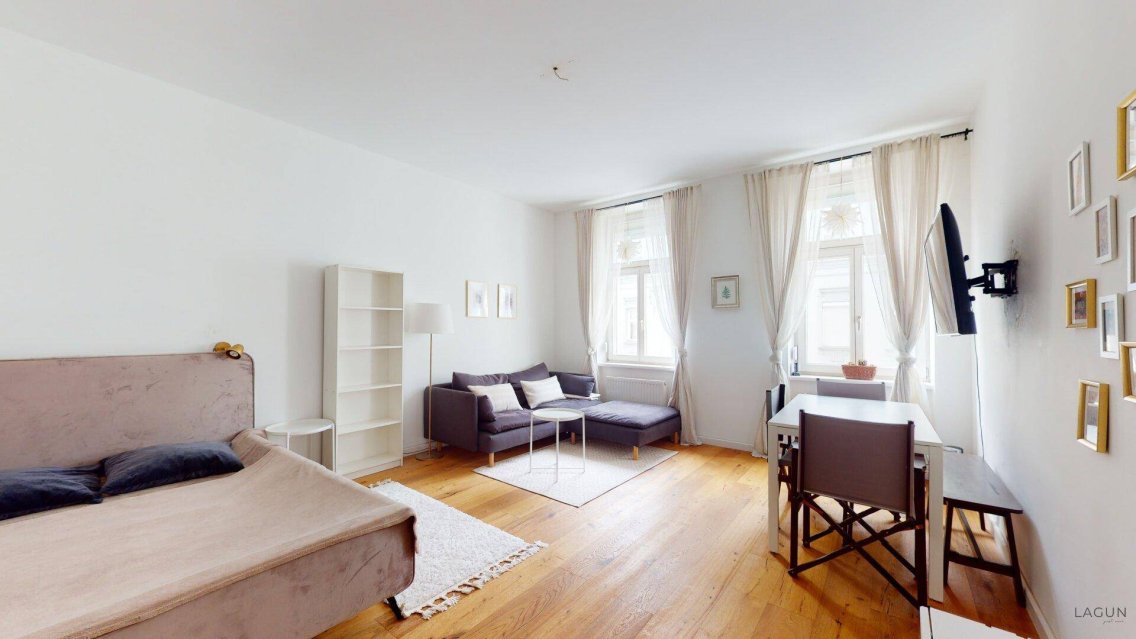 Willkommen in Ihrem neuen Zuhause. Diese stilvoll sanierte 2-Zimmer-Wohnung in einem gepflegten Altbau vereint historischen Charme mit modernem Wohnkomfort. Ideal für Eigennutzer oder als Anlageobjekt mit Potenzial.Highlights der Wohnung44 m² Wohnfläche – durchdachte RaumaufteilungHochwertig modernisiert – Liebe zum Detail & stilvolles DesignVollmöbliert – mit Waschmaschine, TV, Kühl-Gefrierkombi und mehrAußenjalousien für optimalen Licht- und WärmeschutzKellerabteil (ca. 4 m²) für zusätzlichen StauraumBaujahr 1900 | Generalsanierung 2019RaumaufteilungGroßzügiger Vorraum mit voll ausgestatteter KüchenzeileHeller Wohn-/Schlafraum mit Esstisch, Sofa und BettModernes Badezimmer mit Dusche und WCBegehbarer Schrankraum mit optimaler StauraumnutzungTop Lage & InfrastrukturDiese Wohnung liegt in der Davidgasse, nur acht Gehminuten vom Matzleinsdorfer Platz entfernt. Zahlreiche Geschäfte des täglichen Bedarfs wie BILLA, Hofer, DM, Apotheke und Spar befinden sich in unmittelbarer Nähe. Eine Hundezone im Fortunapark ist ebenfalls schnell erreichbar.Perfekte Verkehrsanbindung:Straßenbahnlinie 1 (240 m entfernt) – Direktverbindung zum SchottentorBuslinie 7A (50 m entfernt)Bahnhof Matzleinsdorfer Platz (750 m entfernt) – zukünftige U2-AnbindungU1 Reumannplatz in 12 Minuten mit dem Bus erreichbarPreisinformationKaufpreis: 168.000 € (4.250 €/m²)Betriebskosten: 113,61 €/MonatReparaturrücklage: 55,08 €/MonatMonatliche Gesamtbelastung: 191,19 €Interesse geweckt?Nutzen Sie die virtuelle 3D-Besichtigung für einen ersten Eindruck: