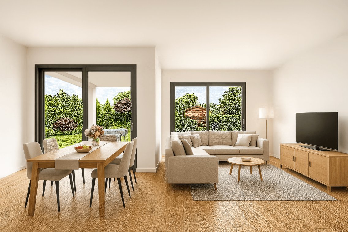 Drei Einheiten sind bereits vergeben – sichern Sie sich jetzt DIE LETZTE HAUSHÄLFTE! OBJEKTÜBERBLICK- Wohnfläche ca. 129 m²- 6 Zimmer- Garten ca. 205 m²- Gesamtgrundstücksgröße 350 m²- Fertigstellung - Frühjahr 2026- Kaufpreis belagsfertig € 488.950,00- Kaufpreis schlüsselfertig € 533.950,00
