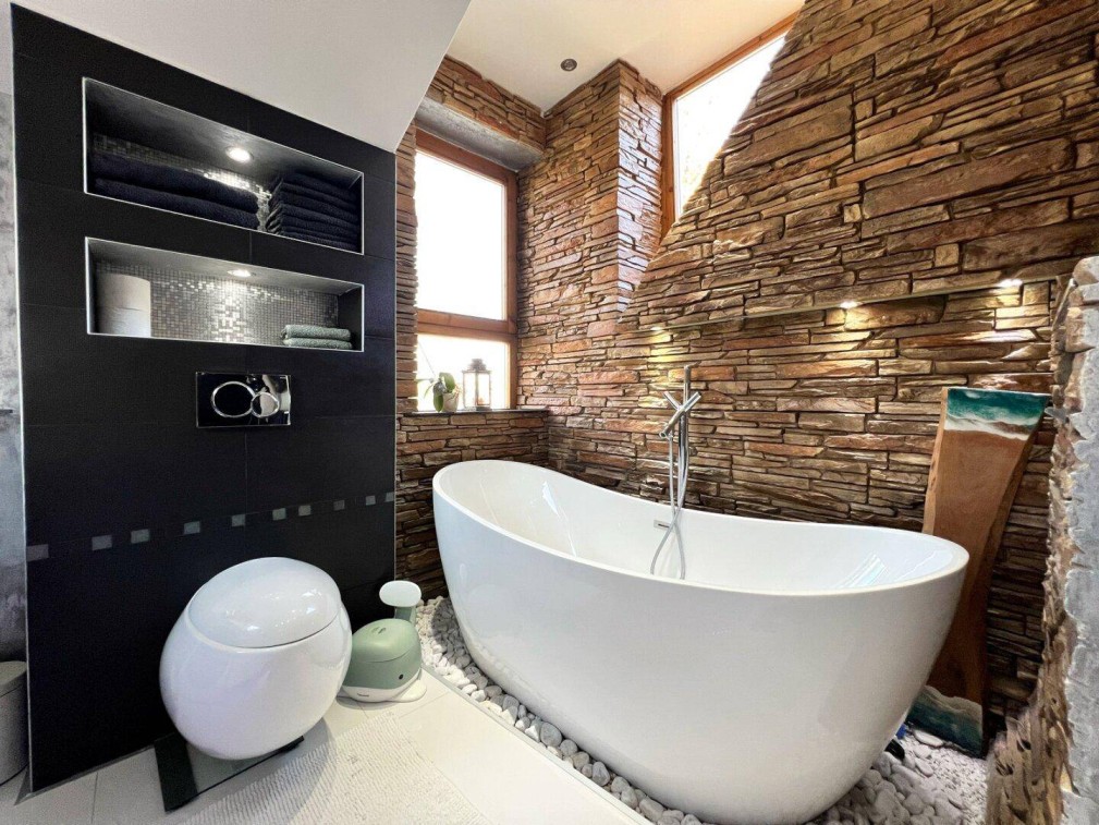• Spa-Badezimmer mit freistehender Badewanne & großer begehbarer Dusche – pure Entspannung