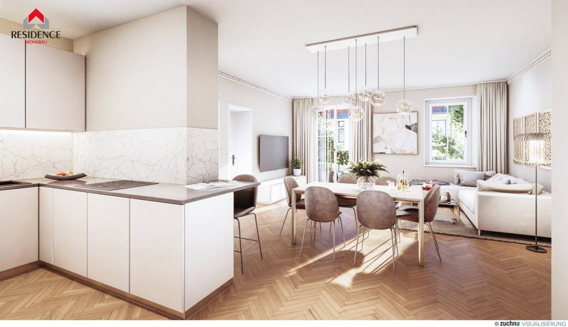 Das von dem renommierten österreichischen Architekten Jakob Ceconi entworfene Stadthaus wird mit viel Sorgfalt generalsaniert, um höchsten Ansprüchen an modernes Wohnen gerecht zu werden – ohne dabei seinen einzigartigen Altbau- Charme zu verlieren. Balkone und Terrassen werden ergänzt, sodass jede Wohnung von einer attraktiven Außenfläche profitiert. Auch ein Aufzug wird eingebaut, der vom Kellergeschoss bis ins Dachgeschoss führt.WohnraumDiese 3-Zimmerwohnung liegt Hochparterre. Die ca. 80 m2 Wohnfläche sind wohldurchdacht angelegt und haben mit zwei Schlafzimmern, Bad, WC, Garderobe, Vorraum sowie dem ca. 26 m2 großen Wohn/Ess/Kochbereich alles im Programm, was gutes Wohnen ausmacht. Große Fenster sorgen für eine natürliche und angenehme Wohnatmosphäre. Und wer eine Auszeit unter freiem Himmel genießen möchte, kann sich auf dem eigenen Balkon entspannt zurücklehnen. Zum Wohnpaket gehören auch Kellerabteil und Freistellplatz. Die Kosten pro Stellplatz betragen € 20.000,-. Dieses innovative Wohnkonzept überzeugt auf ganzer Linie mit perfekter Raumaufteilung und hohem Wohnkomfort.AusstattungBei den Projekten von RESIDENCE Wohnbau setzt man auf Hochwertigkeit und Langlebigkeit. Diese Philosophie ist schon beim ersten Schritt in den Wohnraum spürbar, wenn man den edlen Landhausdiele-Parkettboden aus Eiche betritt. In den zeitlos schönen Sanitärräumen sind großformatige Fliesen aus Feinsteinzeug verlegt. Die Bäderausstattung ist geprägt von Qualitätsmarken und modernem Design. Dreifach verglaste Kunststoffisolierfenster garantieren beste Wärmeisolierung und herrliche Ruhe. Die Räume sind angenehm hell durch zahlreiche Fenster im Inneren. Durch den Fernwärmeanschluss ist ein effizientes Heizen und ein optimales Raumklima ein Kinderspiel.LageDie zentrale Lage ist ideal: Nur zwei Straßen weiter lädt der Geh- und Radweg entlang der Salzach zu ausgiebigen Spaziergängen ein. Der Hauptbahnhof, Obus-Haltestellen, der Mirabellgarten sowie zahlreiche Cafés, Restaurants und zwei Einkaufszentren sind in wenigen Minuten erreichbar.