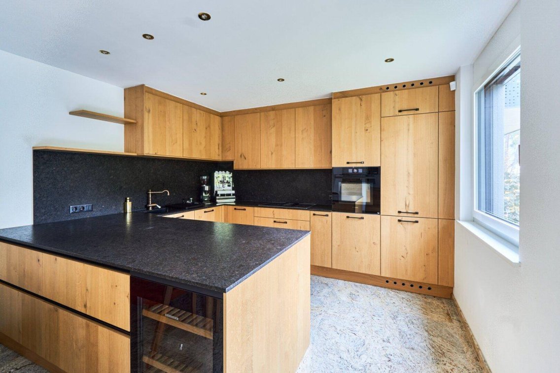 Zur hochwertigen Ausstattung zählen Granit- und Travertinböden, Raffstores, Fußbodenheizung, Alarmanlage und hochwertige Einbauküche.