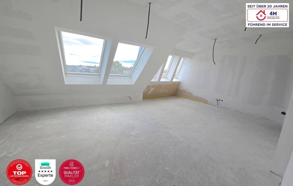Belagsfertige 3-Zimmer-Dachgeschosswohnung mit Terrasse und 36m² Dachterrasse im Erstbezug!