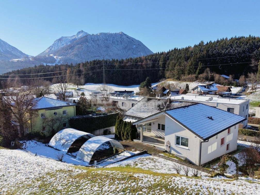 Willkommen in Ihrem neuen Zuhause in der malerischen Gemeinde Göfis in Vorarlberg, wir freuen uns Ihnen die Immobilie exklusiv anbieten zu dürfen und stehen gerne für eine Begehung zur Verfügung.Die Lage des Domizils stellt eine Besonderheit dar und erfüllt die Ansprüche nach viel Besonnung und bietet einen Mehrwert durch die ausgezeichnete gesetzte Ruhelage mit viel Grün und ausgezeichneter Luftgüte.Das architektonisch gelungene Wohnkonzept erstreckt sich auf eine weitläufige Fläche von ca. 146,81 m² Wohnnutzfläche und wird durch die ausgewählte und hochwertige Ausstattung harmonisch abgerundet. Bereits beim Betreten des Hauses wird die Aufmerksamkeit auf den klaren und offenen Schnitt / Grundriss gelenkt und es beeindrucken die vorhandenen Wohnlösungen. Die Nutzung kann sowohl auf einer Ebene (Bungalowstil) als auch als Vollnutzung erfolgen – die offene Einteilung mit den drei vollwertigen Zimmern lässt alle Möglichkeiten offenBesonders erwähnenswerte Wohndetails für Ihre erste Vorinformation.· Wintergarten mit freiem Blick in die Berge· Outdoorbereich mit Terrasse und schönem Garten· Fensterfronten mit viel Lichteinfall· Tageslichtbad mit Whirlpool-Badewanne· 3 Zimmer (zwei im EG gelegen - eines davon im Souterrain mit angrenzenden Badezimmer DU)· Gemütlich-stilvoller Kachelgrundofen mit viel Heizleistung· Wohlig angenehme und zeitgemäße Fußbodenheizung· Hochwertige Granitböden· Vollausgebauter Dachboden mit viel Staufläche· Vollunterkellerung mit 3 großen Räumen· Sehr entspannte Parksituation· Massive Bauweise uvm.Das Herzstück des Hauses stellt der Wohn- und Essbereich dar und die Küchenlodge mit separierter Wirtschaftskammer und den hochwertigen Geräten sowie der modernen Ausstattung machen das Kochen zum richtigen Vergnügen. Die Fensterfronten leiten den Blick immer wieder ins Grüne mit endlos atemberaubender Sicht auf die freie Landschaft und die Berge.Dank der großen Fensterfronten ist jedes Zimmer lichtdurchflutet und hell.Die gesamte Parksituation wurde durchdacht konzipiert und offeriert eine Doppelparker-Garage sowie 5 Außenstellplätze.Unsere Expertenmeinung. Das Einfamilienhaus vereint hohe Wohn- und Lebensqualität mit nennenswerten ökologischen Details wie die Erdwärmeheizung, welche mit Solarenergie gekoppelt ist und moderate Wohnnebenkosten bietet. Die Lage, die Lage, die Lage.. ist wirklich sehr schön und vereint Bestkriterien mit sehr guter naheliegender Infrastruktur - eine Immobilie mit Mehrwert. Kaufnebenkosten.3,5 % Grunderwerbsteuer1,1 % Eintragungsgebühr im Grundbuch (Im Rahmen des Bau- und Wohnpakets wurde eine temporäre Befreiung von den Eintragungsgebühren in den §§ 25a, 25b und 25c Gerichtsgebührengesetz beschlossen die Eintragung des Eigentumsrechts einer Eintragungsgebühr von 1,1 % bzw. die Grundbucheintragung eines Pfandrechts (Hypothek) für die Finanzierung der Liegenschaft einer Eintragungsgebühr von 1,2 % - bei Erwerb bis € 500.000,-/Hauptwohnsitz)Vertragserrichtungsgebühr / BarauslagenBeglaubigungsgebühr3 % Vermittlungsprovision zzgl. 20 % gesetzlicher USt. gemäß MaklerverordnungRechtlicher Hinweis.