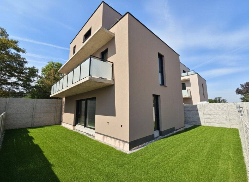 Entdecken Sie modernes Wohnen inmitten einer traumhaft schönen Umgebung. Die 6 Einfamilienhäuser bieten nicht nur Platz für die ganze Familie, sondern schaffen auch ein Fundament für Jahrzehnte, das Ihrem Lebensmittelpunkt eine solide Basis verleiht.Jedes Haus wurde mit durchdachter Planung und hochwertiger Ausstattung konzipiert. In Ziegelbauweise errichtet und energieeffizient der Klasse B entsprechend, garantieren Luft/Wärmepumpen inklusive Fußbodenheizung ein angenehmes Wohnklima zu jeder Jahreszeit.Genießen Sie die Sonne auf Ihren wunderschönen Außenflächen – ob im eigenen Garten oder auf der nach Süd/Ost ausgerichteten Terrasse. Die großzügigen Fenster und Terrassentüren mit Wärmeisolierverglasung und Rollläden sorgen für ein helles und behagliches Ambiente.Parken Sie komfortabel mit 2 eigenen Stellplätzen direkt am Grundstück.Die Häuser sind belagsfertig – die goldene Mitte der Ausbaustufen. Während einige Arbeiten wie Streichen, Fliesen- und Bodenverlegen noch auf Sie warten, ist der Großteil der Montage bereits abgeschlossen. Hier haben Sie die Möglichkeit, selbst Hand anzulegen und Ihrem neuen Zuhause eine persönliche Note zu verleihen. Wir stehen Ihnen dabei gerne beratend zur Seite und bieten Ihnen Unterstützung bei der Materialauswahl durch unsere erfahrenen Partner.Die großzügige Raumgestaltung mit 5 Zimmern und 3 Bädern, eine großzügige Wohnküche sowie der schöne Eigengarten machen diese Häuser zu einem idealen Ort für Familienleben und Entspannung gleichermaßen. Dank hochwertiger Grundausstattung, erstklassiger Baustoffe und einer durchdachten Planung bieten wir Ihnen Wohnqualität auf höchstem Niveau.Freuen Sie sich auf nachhaltige Extras, die Ihren Wohnkomfort weiter steigern: Von der hochwertigen Fassade über die energieeffiziente Heizungsanlage bis hin zu den langlebigen Fenstern und Türen – hier wurde an alles gedacht, um Ihnen ein Zuhause zu bieten, in dem Sie sich rundum wohlfühlen können.Erleben Sie das Beste aus moderner Architektur und durchdachtem Wohnkonzept – vereint zu Ihrem neuen Zuhause. Wir laden Sie herzlich ein, Teil dieses exklusiven Projekts zu werden und Ihren Wohntraum zu verwirklichen.Freuen Sie sich auf nachhaltige Extras:Bei der Realisierung des Neubaus wurde großen Wert auf eine hochwertige Ausstattung sowie langlebige Materialien gelegt:25 cm Planziegel und 20 cm Wärmedämmverbundsystem Fassade (geringer Heizwärmebedarf = geringe Heizkosten)Zwischenwände ZiegelLuft/Wärmepumpe mit 300 l Warmwasserspeicher in Kombination mit einer Fußbodenheizung Flachdachausführung gemäß Dachdeckerrichtlinien als WarmdachDie Fenster und Terrassentürelemente sind aus weißen Kunststoff-Alu-profilen - Wärmeisolierverglasung. Sonnenschutz durch elektrische Rollladen und Raffstore.Eingangstüre ist aus Aluminiumprofilen mit einer Dreifachverriegelung, Falzdichtungen und Sicherheitsbeschlag, anthrazit beschichtet.2 Autoabstellplätze Terrasse, Balkon und EigengärtenAbstellraum 3 BäderPV Vorbereitung + KlimavorbereitungUvm.Infrastruktur:Die Lage und die Nahversorgung ist ausgezeichnet. In unmittelbarer Nähe befinden sich diverse Einkaufmöglichkeiten und öffentliche Anbindungen.Bus Bahnhof Deutsch WagramEnergieausweis:Der Heizwärmebedarf 36,4 kWh/m2a (fGEE: 0,61, Kl. A+) entspricht der Klasse B.Kaufpreis Haus 1:Der Kaufpreis beläuft sich auf 499.000, -- € zzgl. 2 Stellplätze zu je 15.000, -- €.Provision: 3% des Kaufpreises zzgl. 20% USt.Für Fragen bzw. Besichtigungen steht Ihnen Herr Kevin Gödel sehr gerne unter [Telefonnummer entfernt] oder [E-Mail-Adresse entfernt] zur Verfügung.Die verwendeten Fotos weisen teilweise KI-generierte Inhalte auf.Wir weisen darauf hin, dass zwischen dem Vermittler und dem zu vermittelnden Dritten ein familiäres oder wirtschaftliches Naheverhältnis besteht.Der Vermittler ist als Doppelmakler tätig.