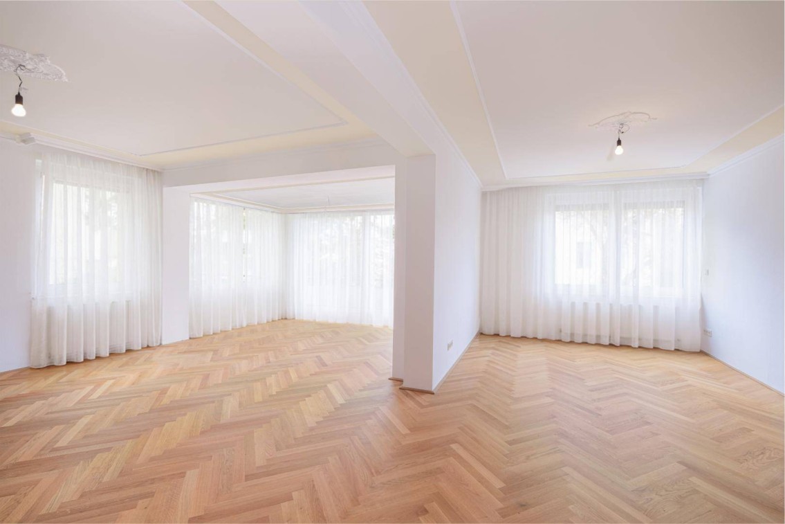 * Rezent erneuerte elegante Echtholzparkettböden