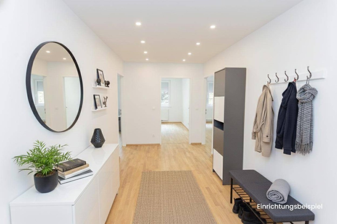 In den Wohnräumen, dem Flur und der Wohnküche wurde ein hochwertiger Fertig-Parkettboden verlegt. Tolle und stylische Fliesen verschönern zudem Sanitärräume, Abstellraum und den Vorraum.
