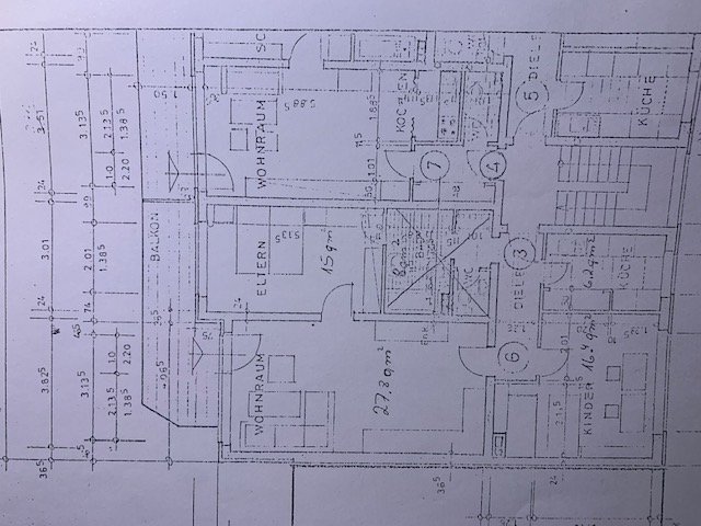 Wohnzimmer ca. 29 qm mit Balkon von 3 qm, Kinder- od. Schlafzimmer 16,5 qm,