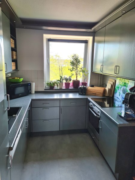 Ein schöner Balkon mit elektrischer Markise lädt zu gemütlichen Abenden ein. Die Wohnung ist mit einer Einbauküche ausgestattet.