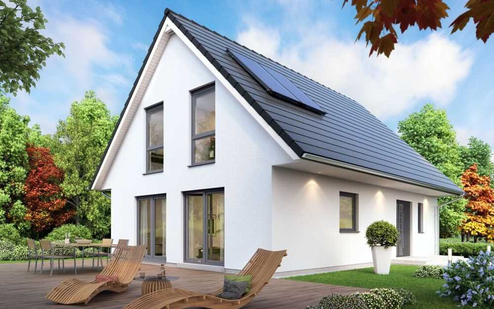 In der Hausserie "KfW 55-1" mit Bodenplatte und Sonderausstattung: Kunststoffrollladen, Schornstein, Sicherheitspaket der Standardfenster im EG sowie der Kühlfunktion für die serienmäßige Luftwasserwärmepumpe mit Fußbodenheizung ist dieses Haus als Jubiläumshaus für 05.2022 gültig!