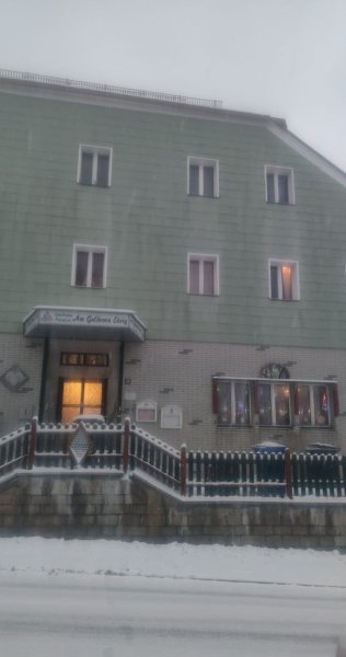 Das Anwesen besteht aus zwei Häusern, drei Garagen, ehemaligen Kuhstahl, einen sehr kleinen Grünabschnitt 50 bis 60 m2, einer Stube mit Festsaal, Pension. Fast jedes Zimmer hat ein eigenes Bad, zum Teil angefangen zu sanieren. Die Küche steht auch noch drin von der Gastronomie.