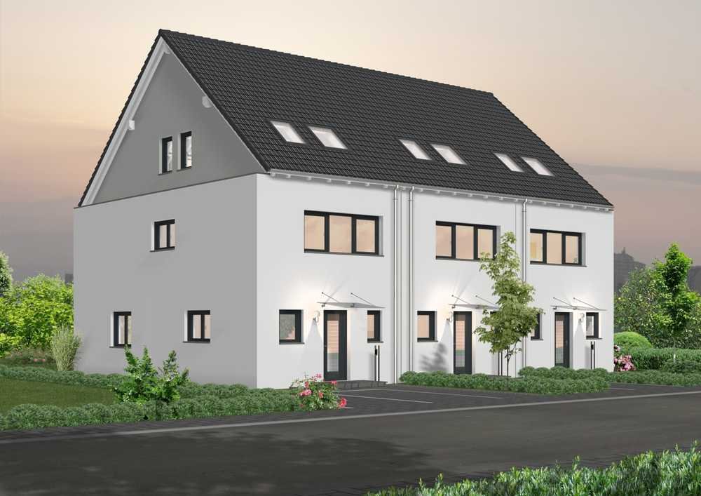 Achtung: Titelbild Haus ist nicht exakt passend. Pläne sind maßgebend, insbesondere was die Gestaltung der Außenanlagen, Fassade u. Fenster betrifft.