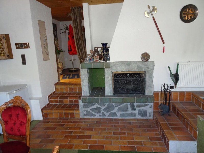 2 ZKB Wohnung (derzeit als Büro genutzt), Wohnbereich mit offenem Kamin auf 2 Ebenen, Flur, innenliegende Küche (derzeit Büro), älteres Badezimmer, Schlafzimmer (derzeit Abstellraum)