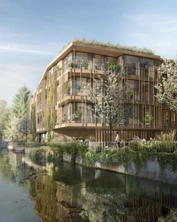 Eine Besonderheit des Projekts sind die Gartenwohnungen direkt am Wasser mit Stegplattformen.
