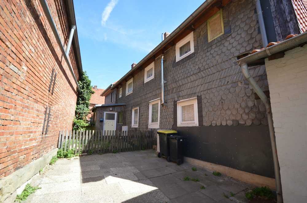Die Wohnung im hinteren Teil des Hauses steht leer und ist sanierungsbedürftig. Hier gehört noch ein Stellplatz, eine Hinterhof mit Terrasse und zwei Schuppen dazu.