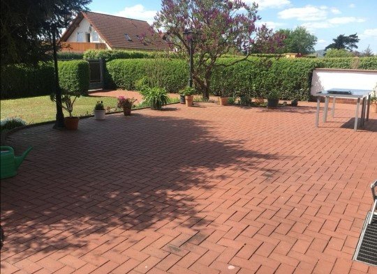 Die große Terrasse zur Südseite lädt zum Grillen/Sonnenbaden ein, während die Kinder im geschützten Garten spielen können.