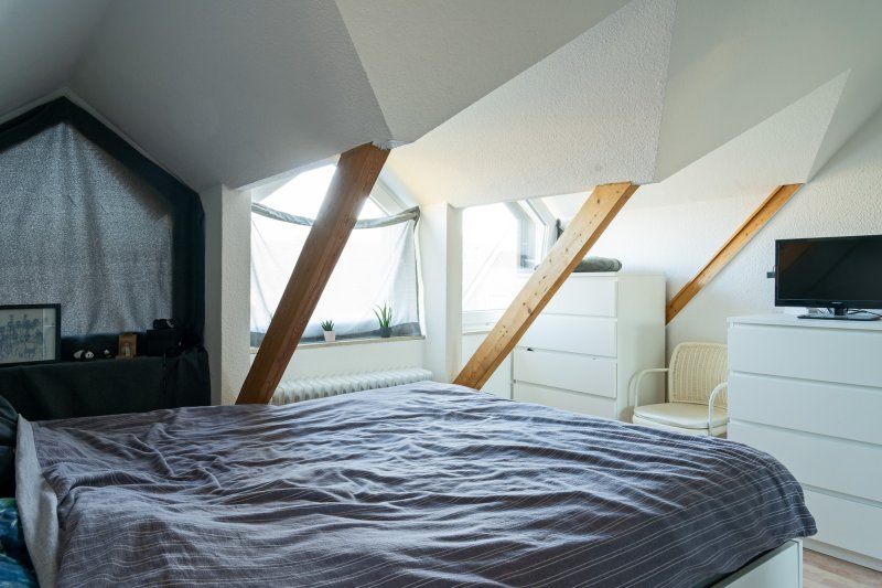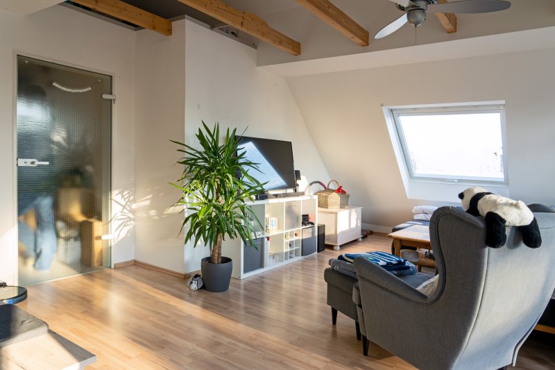Helle, schön geschnittene 3 Zimmer Dachgeschosswohnung in 13 Parteienhaus mit einigem Stellplatz Nähe Flötenteich