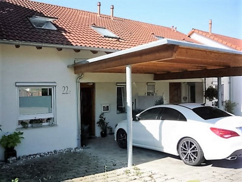 Der Eingang zur Wohnung ist von der Straße ebenerdig und durch das Carport überdacht. Der Balkon im EG ist durch ein Glasdach geschützt.