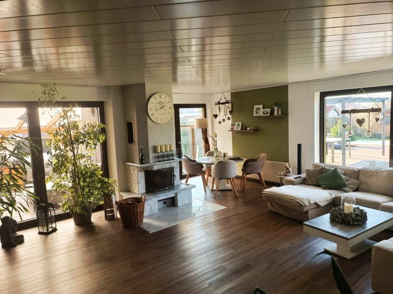 Dieses schöne Einfamilienhaus hat eine großzügige Raumaufteilung. Die lichtdurchfluteten Zimmer bieten reichlich Platz und machen auch ebenerdiges Wohnen möglich. Kinder oder Gäste haben in der ersten Etage durch eine Tür abgetrennt 2 große Zimmer und ein Badezimmer.