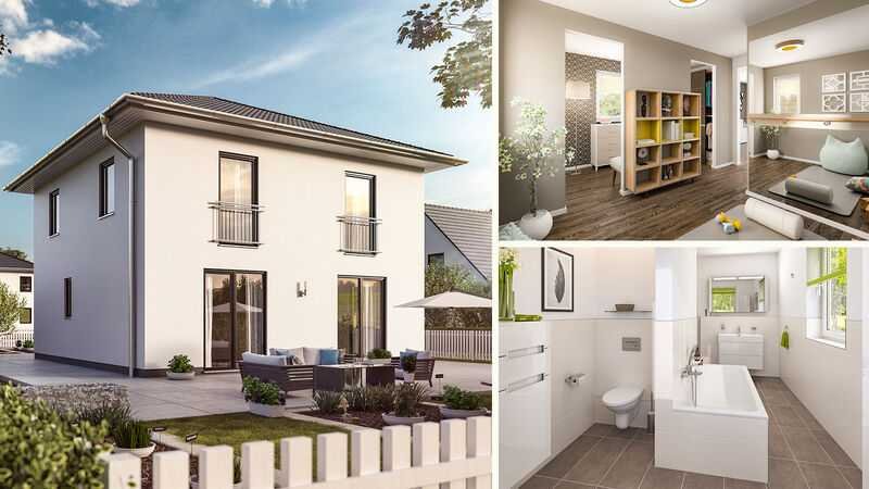 Die kubische Form ist der Klassiker im Stadthausdesign und prägt auch das Aussehen unseres Stadthaus Flair 124. Im Inneren setzt sich der urbane Stil fort: der großzügige Wohn- und Essbereich erstreckt sich über die gesamte Hausbreite und ist das Herzstück des Hauses. Große Fenster lassen viel Tageslicht hinein und führen gleich hinaus ins Grüne.