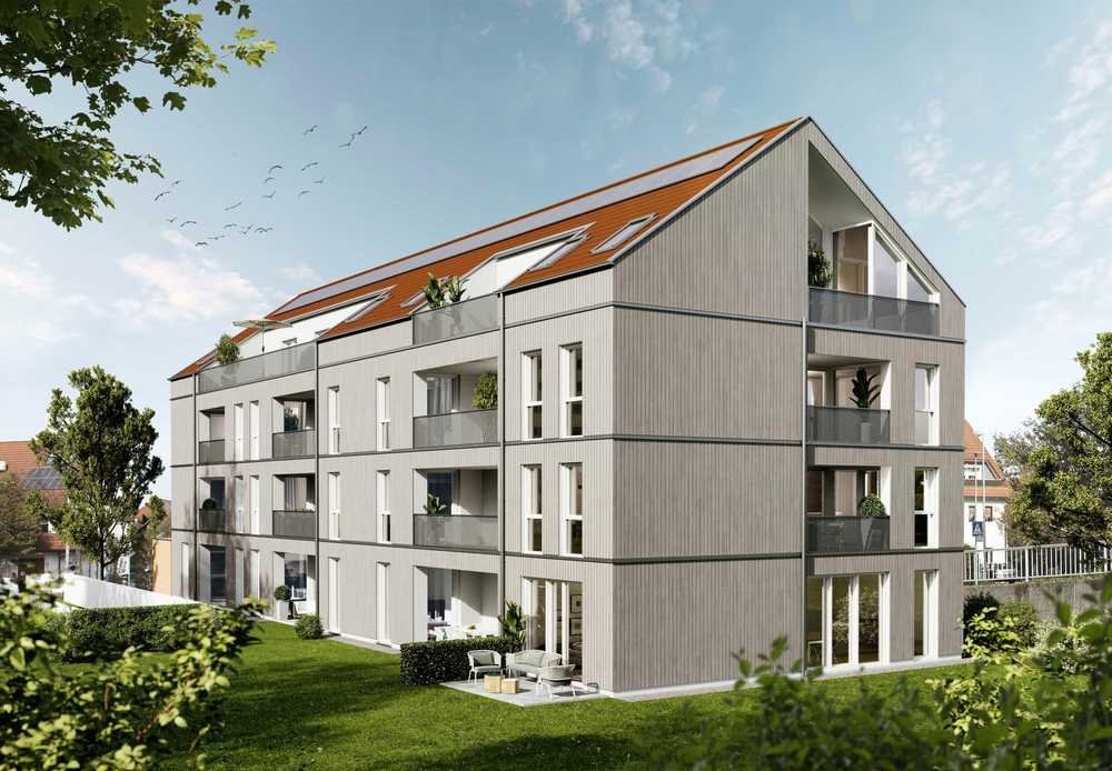 Die zentrumsnahe und ideal angebundene 3-Zimmer-Wohnung im zweiten Obergeschoss eines innovativen und nachhaltigen Holzhauses hat außer zwei schönen Schlafzimmern und einem großen, hochwertig ausgestatteten Tageslichtbad mit bodentiefer Dusche außerdem einen lichtdurchfluteten Wohn-Essbereich mit überdachter Loggia. Zur Wohnung gehört außerdem ein Kellerraum, ein Aufzug bringt Sie stufenlos in Ihre Wohnung.