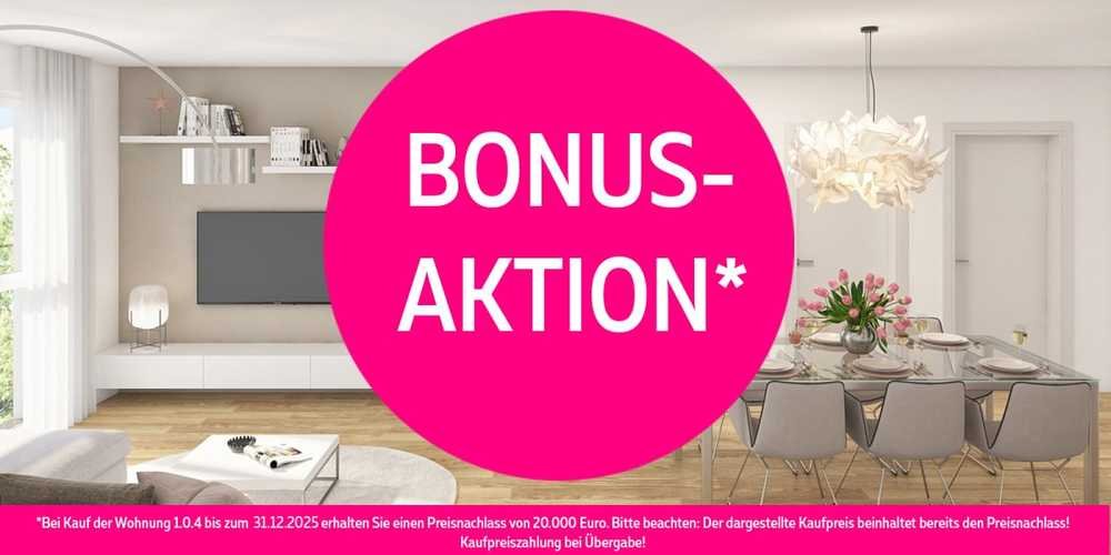*Bei Kauf einer Wohnung bis zum 31.12.2025 erhalten Sie einen Preisnachlass von 20.000 Euro. Bitte beachten: Der dargestellte Kaufpreis beinhaltet bereits den Preisnachlass!