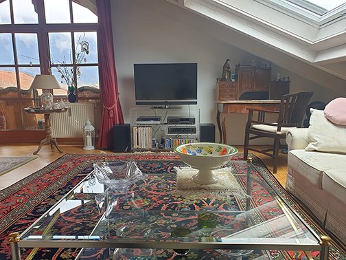 Die großen Dachfenster (WZ und SZ) mit automatischer Verdunklung wurden 2022 erneuert. Videos aus der Wohnung unter: