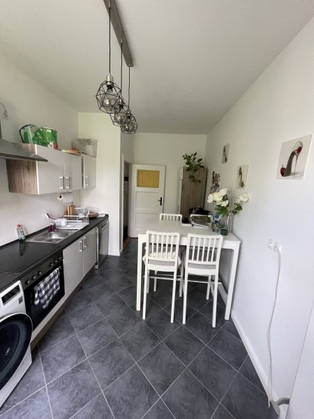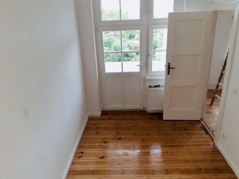 Die Eigentumswohnung in Hennigsdorf besticht durch ihren Altbaucharme. Sie befindet sich im 2. OG und verfügt über ein großzügiges Wohnzimmer, ein gemütliches Schlafzimmer mit Balkon und eine geräumige Küche. Das Badezimmer hat eine Eckbadewanne und ein Hänge-WC. Die Wohnung wurde 2020 umfassend saniert, die Fenster wurden erneuert, alle Dielenböden geschliffen und lackiert und es wurde eine Einbauküche eingebaut.