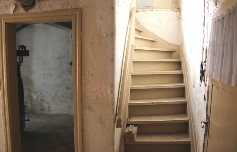 - 1/2 gewendelte Holztreppe zum OG/ DG, Steinstufen Keller
