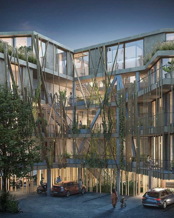 Ein Grundstück direkt am Wasser gelegen und doch mitten in der Stadt – eine so erstklassige Lage verdient eine Bebauung, die sich abhebt. Und das wortwörtlich. Deshalb haben wir mit WOHNEN AM MÜHLBACH einmal mehr kreuz und quer gedacht und ein Wohngebäude entworfen, das sich an der Expertise und Schönheit der Natur orientiert. Ein Haus gleich einem »fliegenden Vogelnest«.