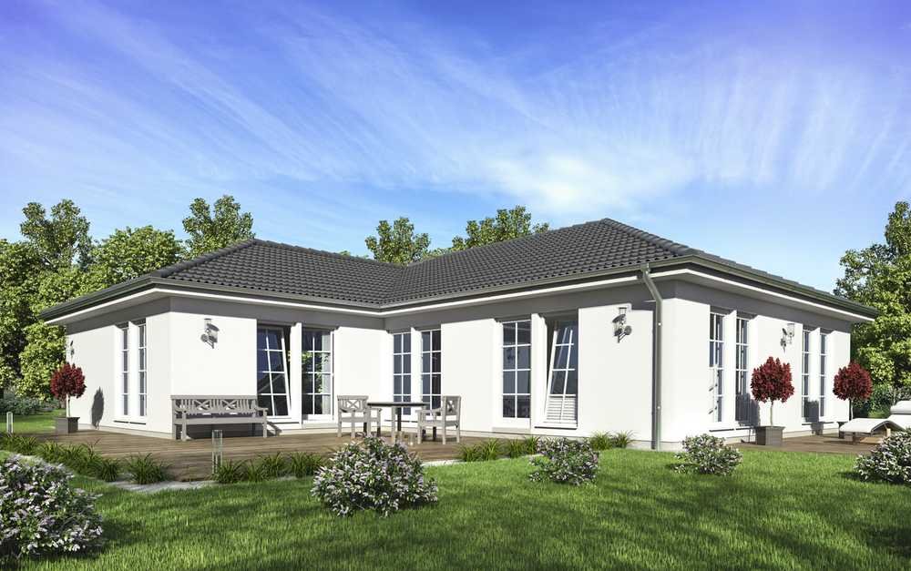 Warum soll es eigentlich nicht möglich sein, mehrere Generationen auf einer Ebene unter einem Dach unterzubringen? Unsere überzeugende Antwort ist hier das SH 137 WB EW – ein ebenso optisch ansprechender wie grundrissseitig durchdachter Winkelbungalow mit Zwei-Zimmer-Einliegerwohnung. Die Hauptwohnung bietet eine Drei-Zimmer-Lösung inklusive großem Vollbad. Das Besondere: Hier verfügen Jung und Alt jeweils über separate Wohnbereiche, die über einen gemeinsamen Flur erreichbar sind.