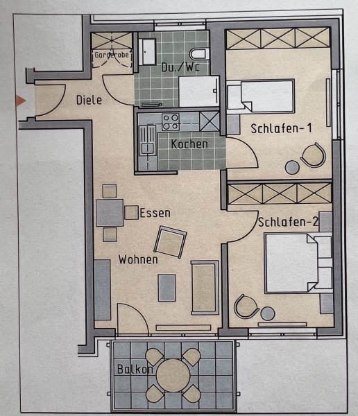 Diese Wohnung hat einen großen Südbalkon. Die Türen sind breit genug und auf Schweller wurde verzichtet.