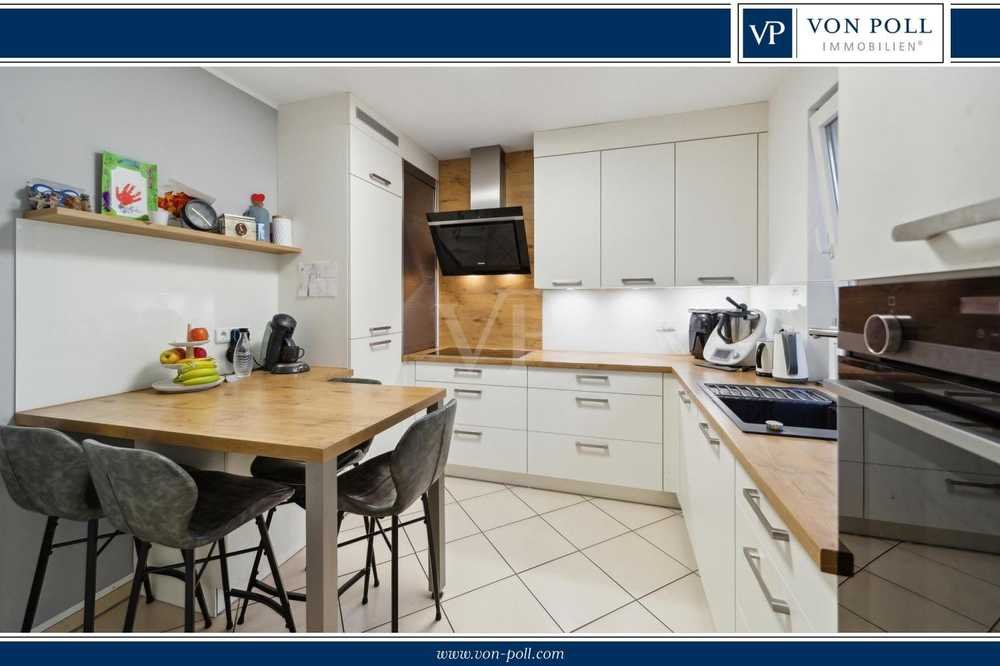 Die Räume erstrecken sich über zwei Etagen und bieten somit ausreichend Platz für eine Familie. Im Erdgeschoss befindet sich der offene Wohn- und Essbereich, welcher eine gemütliche Atmosphäre zum Entspannen und Genießen bietet. Ein Highlight an dem Wohnbereich ist der Zugang auf die Terrasse der Immobilie, die Platz für gemütliche Stunden im Freien bietet. Die Küche ist separat vom Wohnbereich abgetrennt. Die Küche ist mit einer optisch ansprechenden Küchenzeile ausgestattet und verfügt über alle notwendigen elektronischen Geräte. Zusätzlich gibt es ein Gäste-WC und auch einen Hauswirtschaftrum im Erdgeschoss.