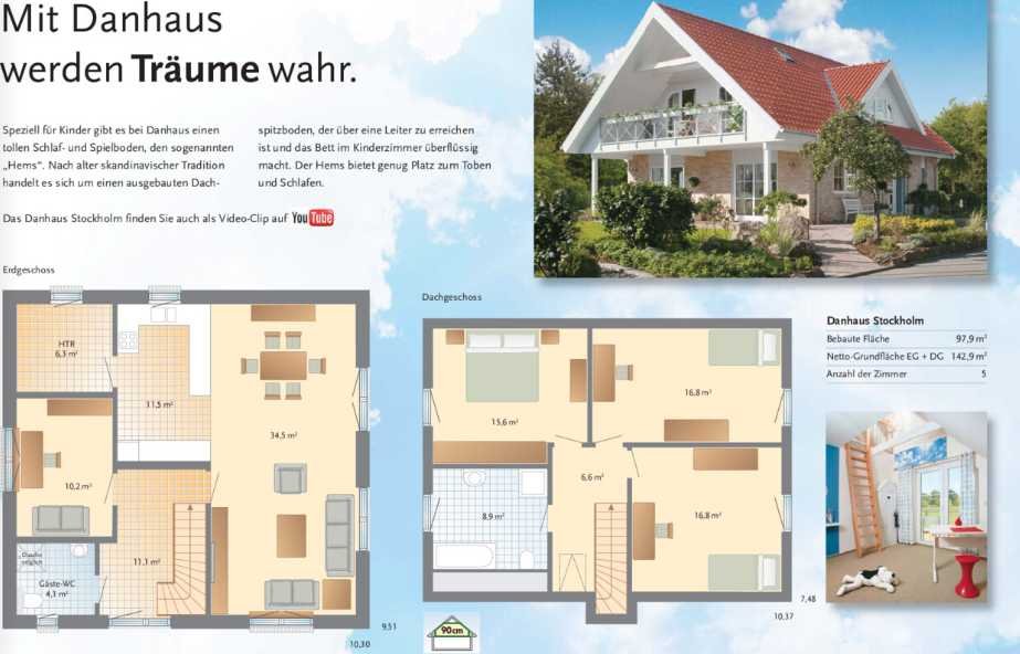 Im Erdgeschoss befinden sich außerdem ein Technikraum sowie ein Gäste-WC. Im Dachgeschoss gibt es keinen Streit um die Auswahl der Zimmer, denn diese sind nahezu gleich groß und im großzügigen Wellness-Bad gibt es am Morgen auch kein Gedränge.