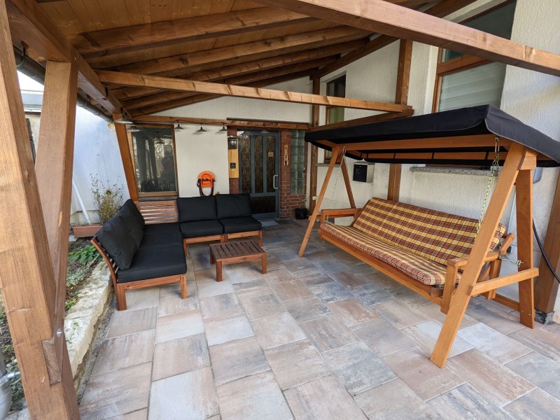+ große überdachte Terrasse im Eingangsbereich (geschützt im ruhigen Innenhof)