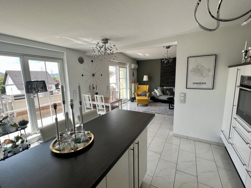 Bei dieser ansprechenden, hochwertigen Immobilie handelt es sich um eine neuwertige 104m2-Penthouse-Wohnung aus Erstbezug im zweiten Obergeschoss einer 8-Parteien-Residenz in Merzig-Stadt, die durch gehobene Innenausstattung (komplett gefliest, V&B, Dornbracht, moderne große weiße Hochglanzküche mit langer Theke) besticht. Wie für modern ausgestattete Wohnungen üblich, gehören zu den 3 schönen Zimmern und dem Badezimmer zusätzlich ein separates Gäste-WC. In der Abstellnische neben der Küche und im Hauswirtschaftsraum ist zusätzlicher Platz zum Aufbewahren und Verstauen geboten. Es handelt sich hierbei um ein barrierefreies Objekt mit einem im Haus befindlichen Aufzug. Zum Apartment gehört auch eine große, in voller Südlage ausgerichtete Loggia mit zwei großen, schattenspendenden elektrischen Marquisen, auf der es sich wunderbar vom Alltag erholen lässt. An heißen Sommertagen beschert die professionelle Klimaanlage innen Abkühlung und angenehme Frische. Für kalte Wintertage besteht durch den bereitstehenden Anschluß die Möglichkeit eines wärmenden Kamins. Außerdem gehört neben einem gemeinschaftlichen Waschraum und dem Tiefgaragenparkplatz, ein großzügiger Kellerraum (aktuell als Fitnessraum umfunktioniert) zur Immobilie, der zusätzlichen ausreichenden Stauraum bietet. Mehr frei verfügbare Stellplätze befinden sich unmittelbar vor dem Haus. Die direkte Umgebung bietet zahlreiche Einkaufsmöglichkeiten und Gesundheitseinrichtungen. Verfügbar ab voraussichtlich Q3/4 2024.