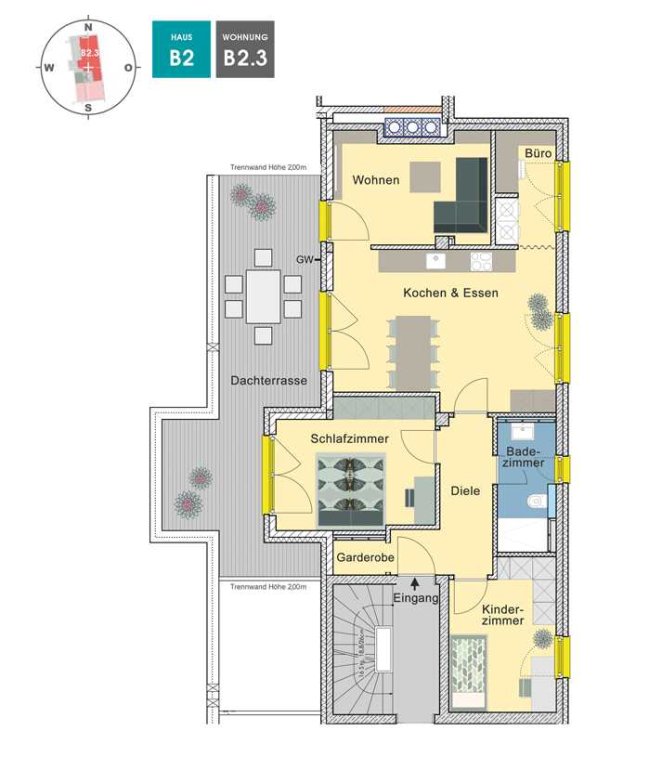 Dachterrasse und Westausrichtung - Durchdachter Grundriss | B2.3