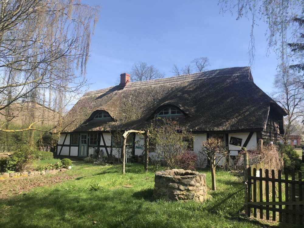 Eine ehemalige Büdnerei aus dem frühen 19. Jahrhundert (ca.1825) mit Schilfrohr-Dach, Lehm-Fachwerk, mit Dielenböden, mit knubbeligen Wänden, urigen Winkeln, kleinen Nischen und einer Durchschnitts-Raumhöhe von ca. 1,90 m, wurde stetig zurück zum Ursprung hergerichtet, um die Vorzüge von einer natürlicher Umgebung zu genießen und zusätzlich kreativ tätig zu sein. Das komplett eingefriedete Grundstück beherbergt drei Nebengelasse und zwei Holzaufbauten mit Terrassen-Charakter und hat nach hinten heraus ein weiteres Zufahrtstor, wo es in Richtung des eigenen Waldes geht. Diese Liegenschaft steht in der Denkmalliste, ist steuerbefreit und hat keine Belastungen, Leitungs- oder Wegerechte für Dritte. Das zugehörige Waldstück (ca. 7.000 m²), ist teils verpachtet (ca. 3.000 m²), kann aber jederzeit gekündigt werden und befindet sich in ca. 800 m Entfernung vom Grundstück.
