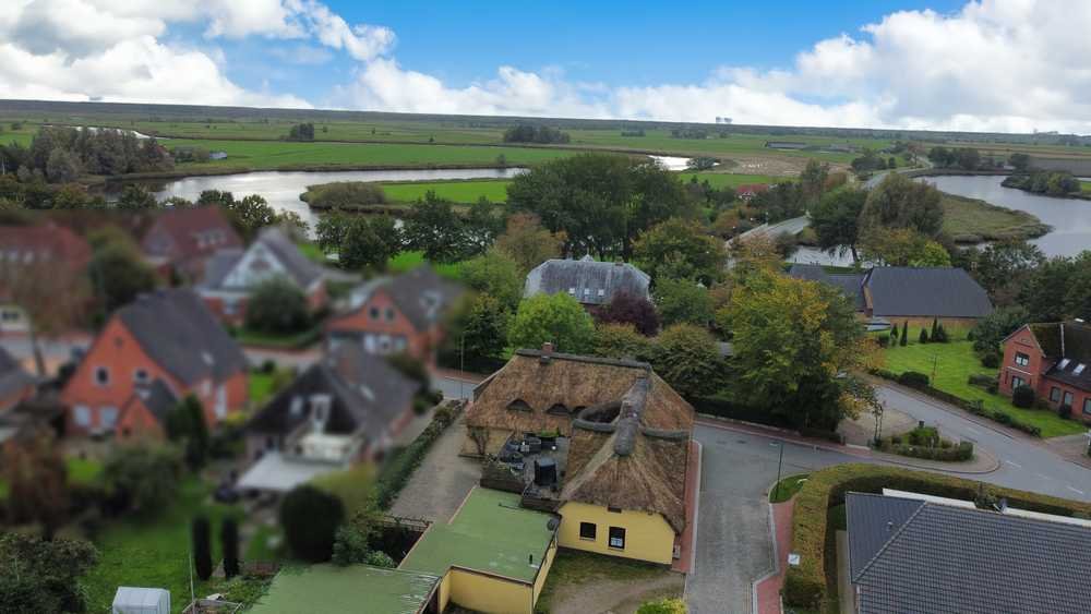 Willkommen in einem historischen Juwel im Herzen von Schwabstedt – einem reetgedeckten Mehrfamilienhaus aus dem Jahr 1690. Dieses einzigartige Anwesen vereint den Charme der Geschichte mit modernem Komfort und bietet drei Wohnungen sowie einen Gewerbeanteil, der derzeit als Friseursalon genutzt wird. Der Außenbereich ist pflegeleicht gestaltet und großzügige Parkmöglichkeiten, einschließlich eines Carports, stehen für Gäste, Kunden und Mieter zur Verfügung. Das Haus befindet sich in unmittelbarer Nähe zur Treene und dem örtlichen Kaufmannsladen.