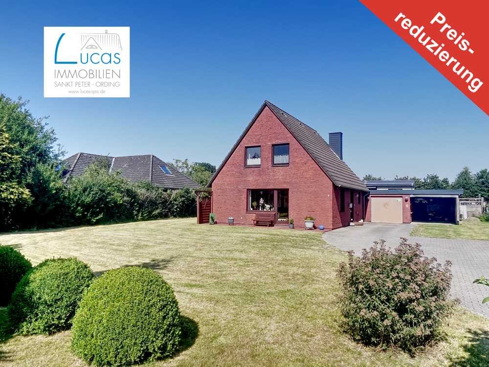 In einer kleinen Seitenstraße eines ruhigen Wohngebietes in Garding befindet sich dieses gemütliche Einfamilienhaus. Es wurde im Jahr 1980 in massiver Bauweise errichtet und 1990 um einen Anbau erweitert. Das pflegeleichte Grundstück bietet eine Größe von ca. 868m2. Durch die ruhige Sackgassenlage eignet sich das Haus ideal für Familien mit Kindern. Die Immobilie befindet sich in einem guten Allgemeinzustand, verfügt über 2-fach verglaste Fenster und bietet viel Platz und individuelle Möglichkeiten sich zu entfalten. Beim Betreten des Hauses begrüßt Sie eine helle Eingangsdiele, von der Sie in alle Räume des Erdgeschosses und über eine Holztreppe in das Dachgeschoss gelangen. Das Erdgeschoss bietet Ihnen einen lichtdurchfluteten Wohn- & Essbereich, eine großzügige Küche mit Essecke und angrenzender Speisekammer, ein Duschbad und den Anbau, welcher aktuell als Hauswirtschaftsraum und Hobbyraum genutzt wird. Im Dachgeschoss befinden sich 3 Schlafzimmer und ein Wannenbad. Beide Bäder sind mit Fußbodenheizung ausgestattet. Das Highlight an sonnigen Tagen ist die uneinsehbare und windgeschützte Terrasse hinter dem Haus. Hier finden Sie zu jeder Tageszeit ein gemütliches Plätzchen. Eine Garage und ein Carport mit angrenzenden Schuppen ergänzen diese Immobilie.