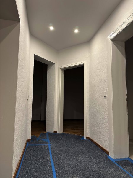 * Abgehängte Decke im Flur: Die Decke im Flur wurde abgehängt und mit Spots ausgestattet, die für eine angenehme Atmosphäre sorgen.