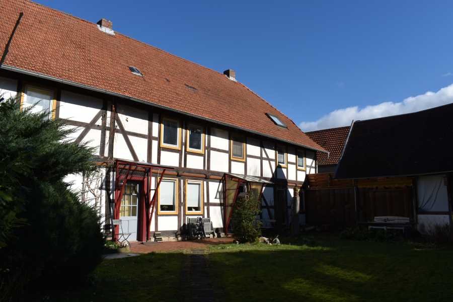 • massives Mauerwerk im EG (Südseite und 10m der Westseite), sonst Fachwerk, schallgedämmte Ostwand (innen und außen, Dorfstraße)