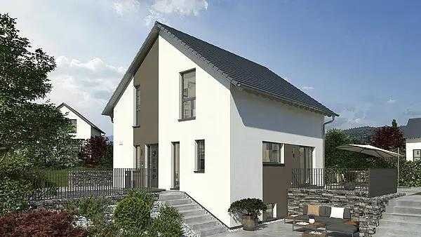 Auf den ersten Blick kaum erkennbar, punktet dieses Einfamilienhaus mit einem ganz besonderen Plus: Es verfügt über einen voll ausgebauten und beheizten Keller, der nicht nur Stauraum, sondern auch die Möglichkeit zur Einrichtung beispielsweise eines Büros bietet. Zudem befindet sich hier ein großer Hauswirtschaftsraum. Gemütlich und zugleich großzügig präsentiert sich unterdessen das Erdgeschoss. Diele und Wohn-Ess-Küche verschmelzen zu einer Einheit und vermitteln ein Gefühl von Weite, das die großen Fensterfronten noch zusätzlich unterstreichen. Die in der Mitte der Etage platzierte Treppe fungiert als Raumteiler und zugleich optisches Highlight. Ebenfalls Parterre befinden sich ein Büro/Gästezimmer sowie ein Gäste-WC. Im Obergeschoss entsteht durch die Dachschrägen ein Gefühl von Behaglichkeit. Hier stehen zwei großzügig geschnittene Kinderzimmer, ein Elternschlafzimmer mit direkt angeschlossenem Ankleidebereich sowie ein großes Wohlfühlbad mit Wanne, Dusche und WC zur Verfügung.