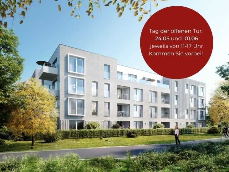 Sie betreten die Wohnung und befinden sich im Flur gegenüber der offenen Küche. des hochwertig ausgestatteten Bades. Zu Ihrer Linken öffnet sich das Highlight der Wohnung: Der offene Wohn-Ess-Bereich mit Balkon und Blick in die offene Küche.