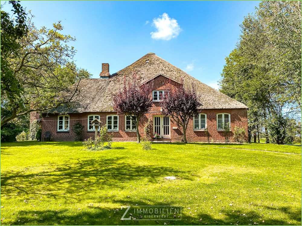 Auf dem ca 7.570m² großen, mit alten Baumbestand umgebenen Grundstück befinden sich noch zwei weitere Nebengebäude. Nach einer grundlegenden Instandsetzung kann hier vielleicht sogar wieder Pferdehaltung möglich sein. Zum Süden des Grundstücks hat man einen herrlichen Blick in die Eiderstedter Marsch bis hin zum Westerhever Leuchtturm und anderen Haubargen.